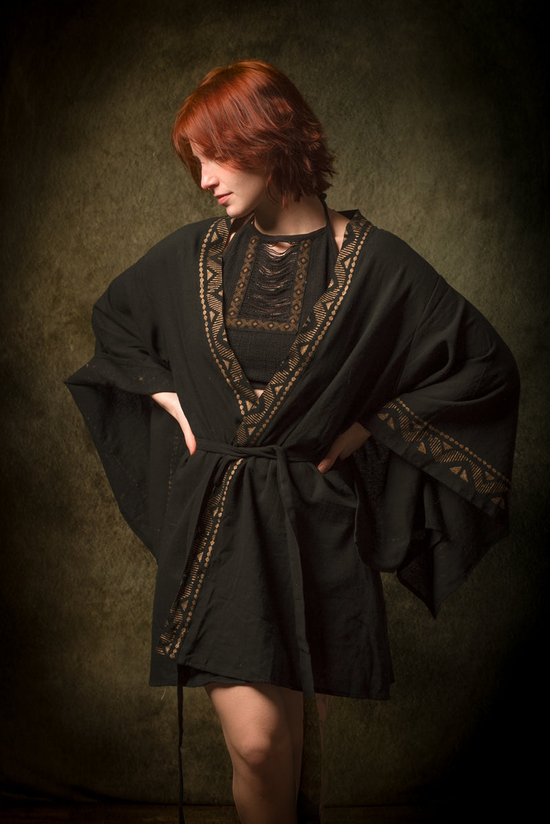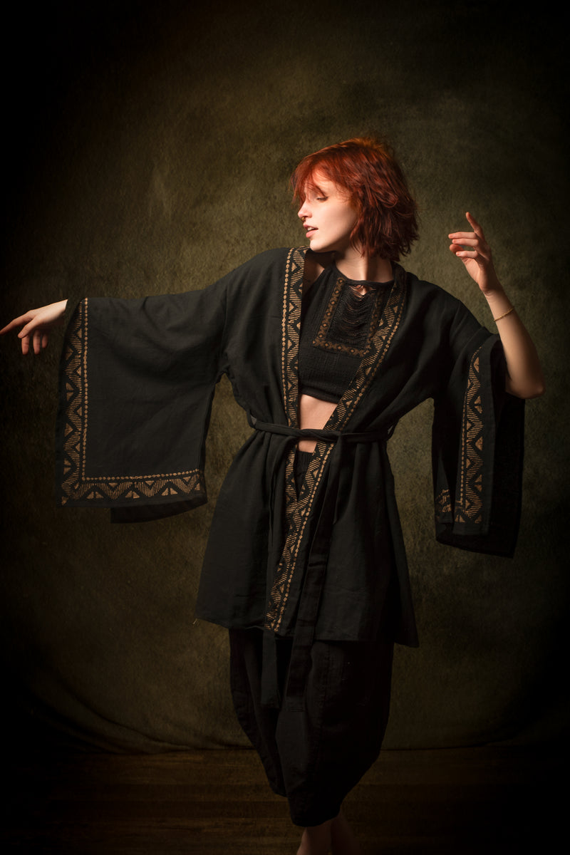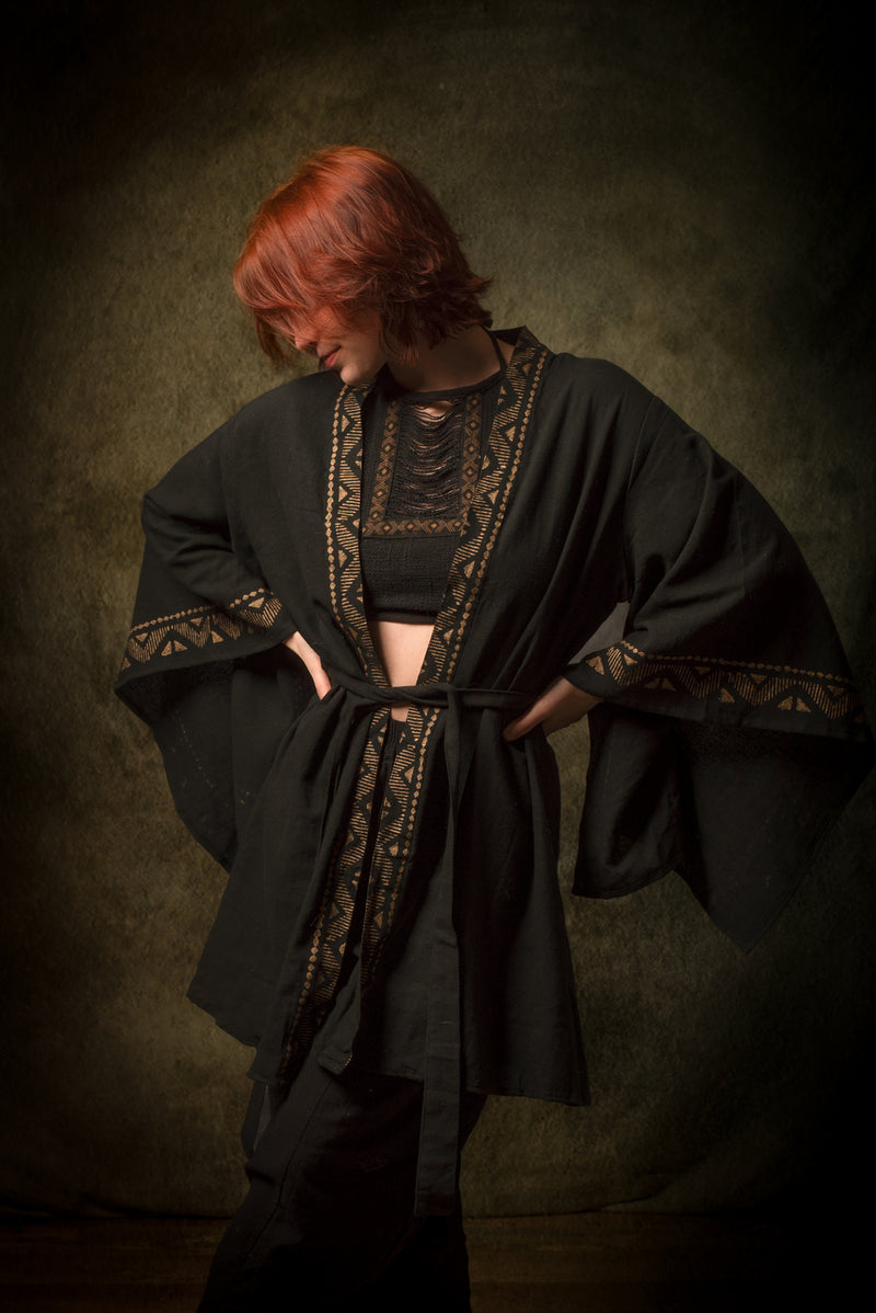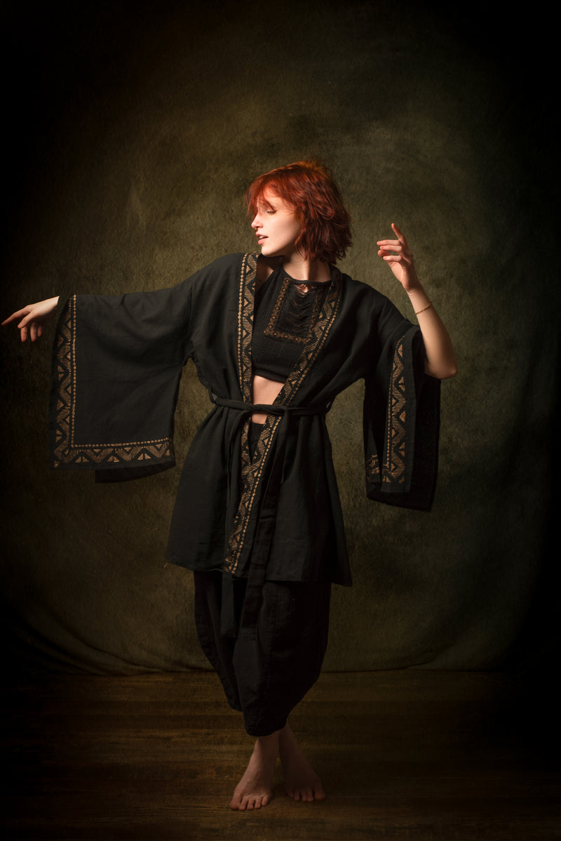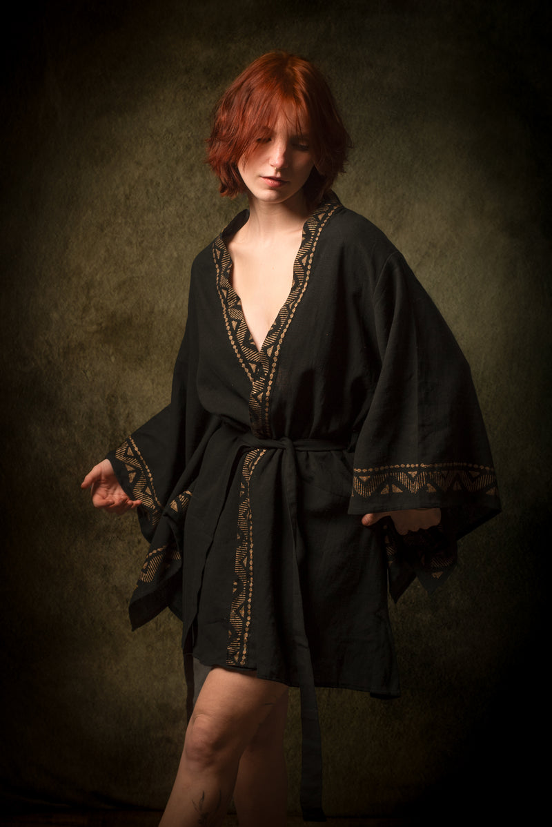 رداء كيمونو قطني أسود من NAAMI