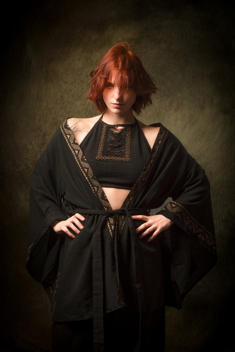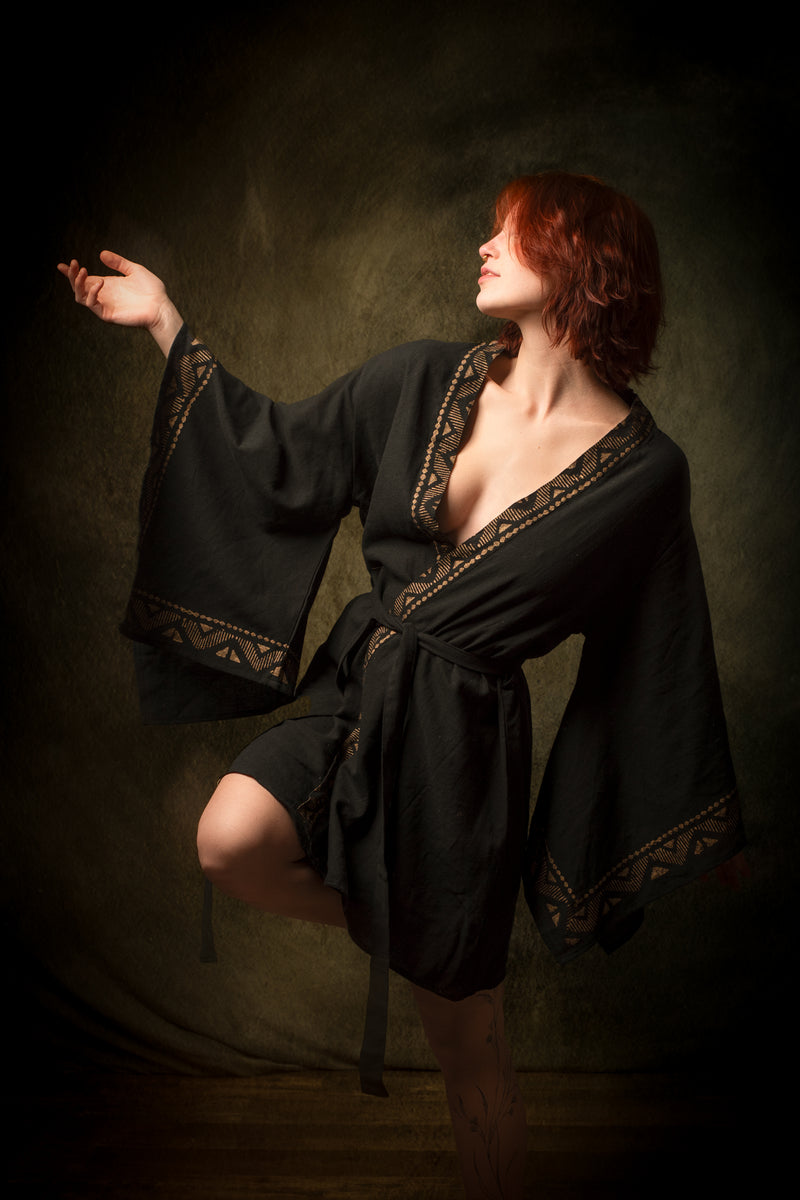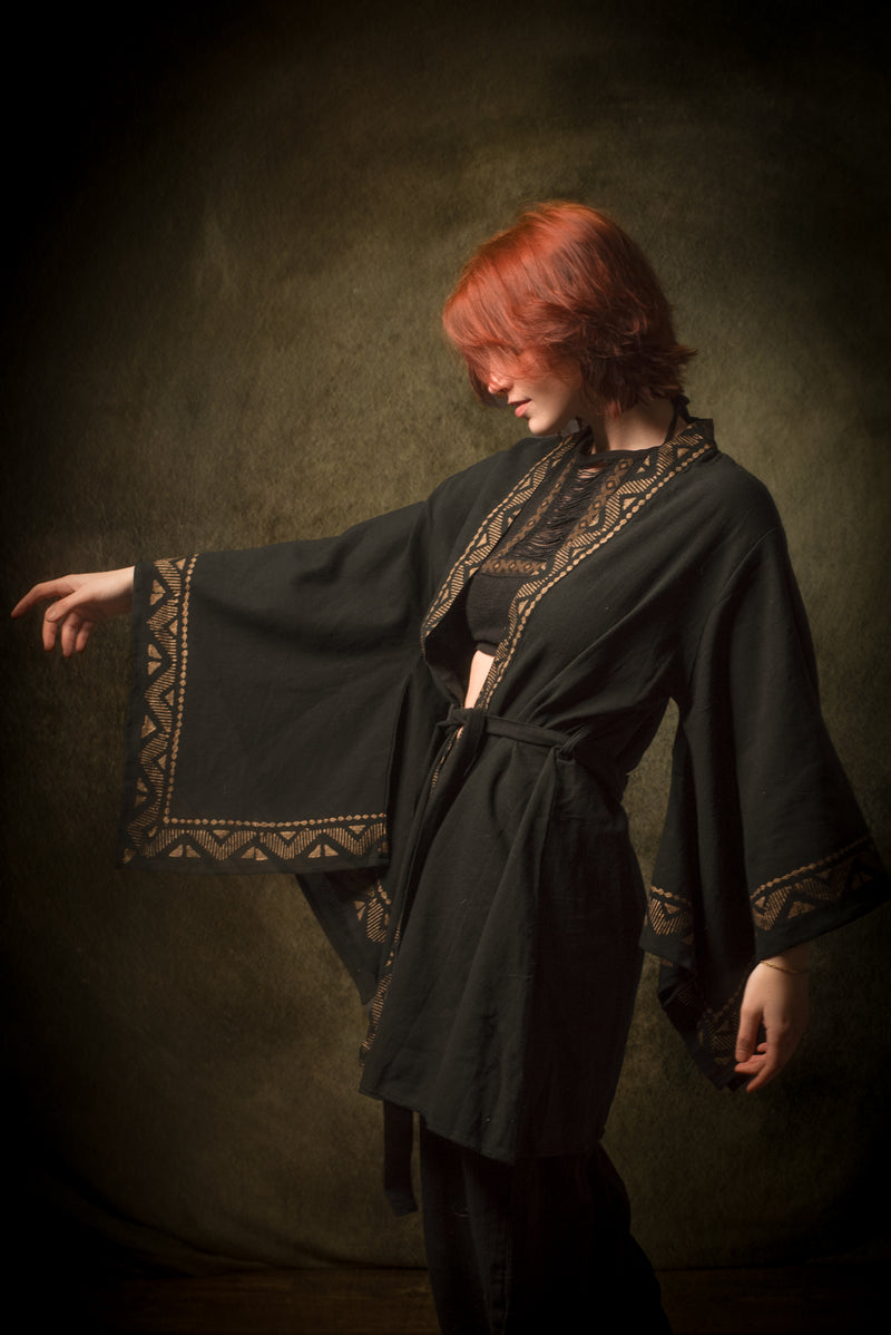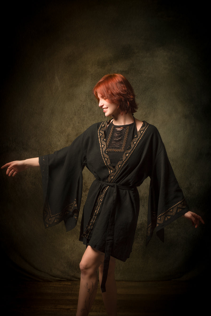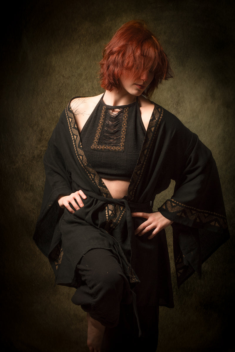 رداء كيمونو قطني أسود من NAAMI