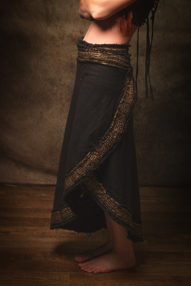NYRA Wrap Skirt Black Handmade Natural Cotton Block Printed Tribal Patterns Natural Dyed Fairy Gypsy Boho Festival Ceremony Ritual AJJAYA