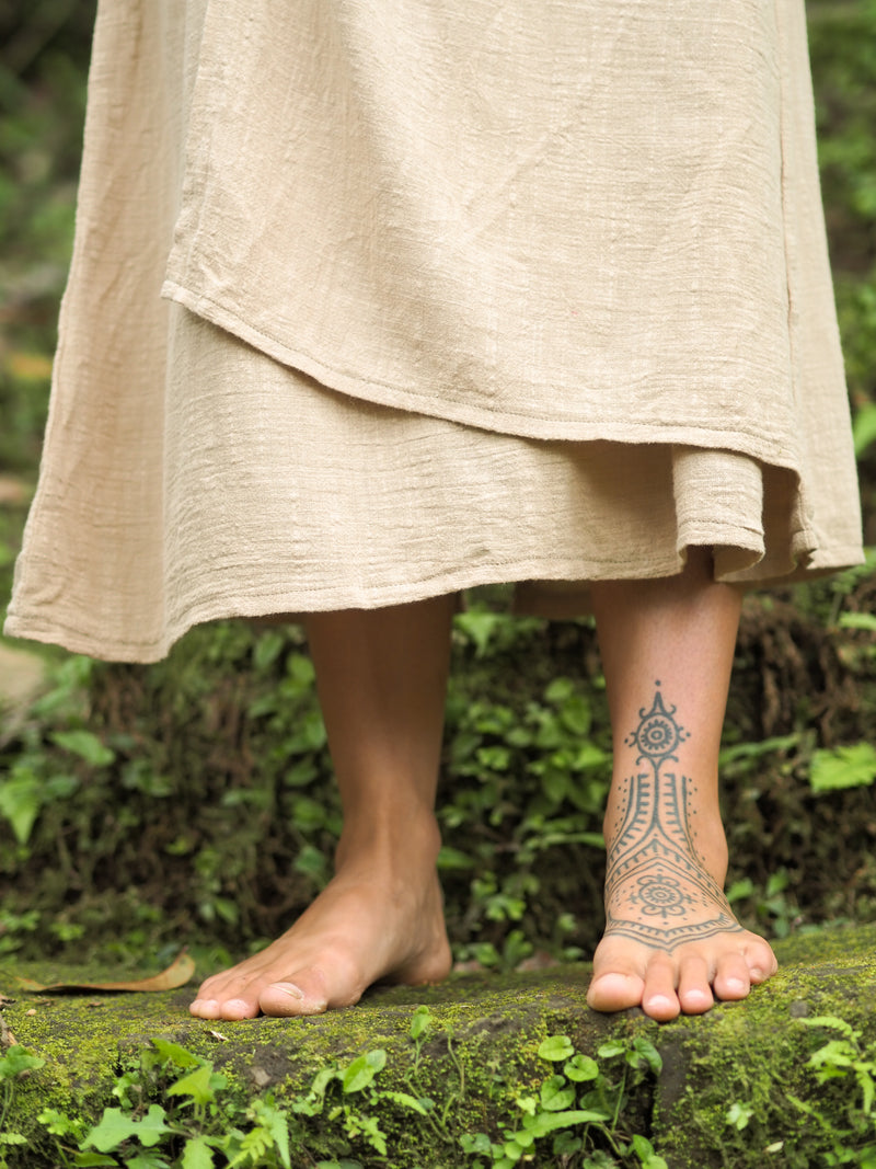 Our garments are handmade from natural fabrics, using sustainable and ethical practices.