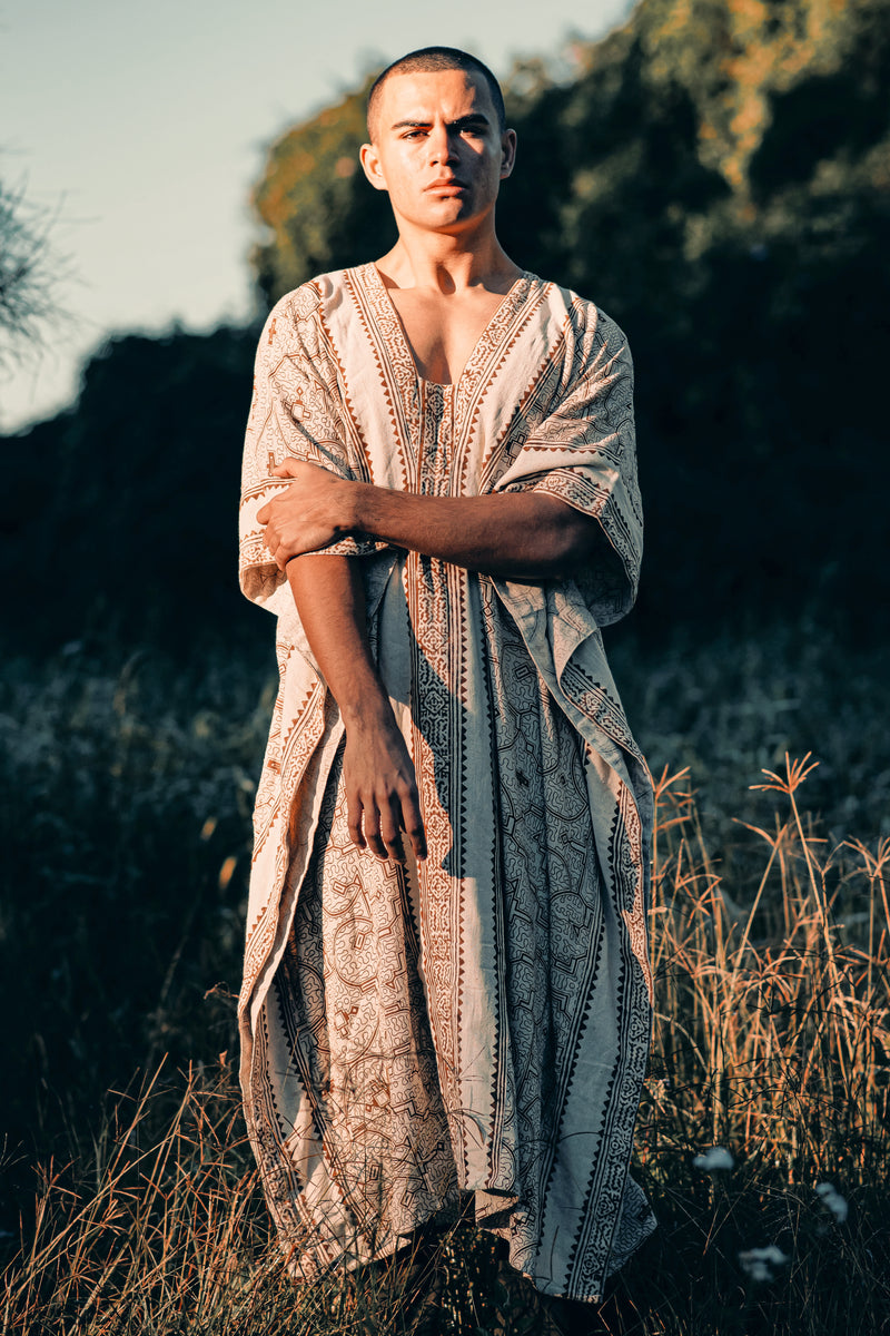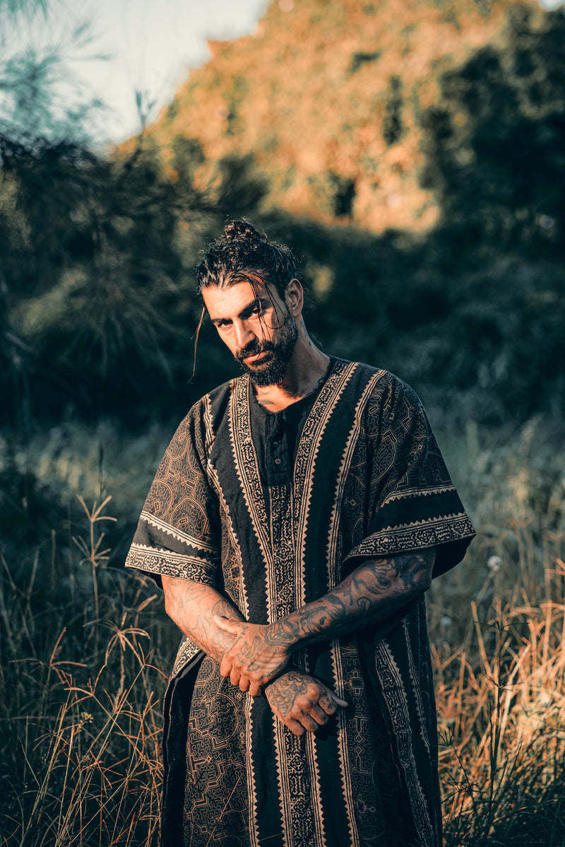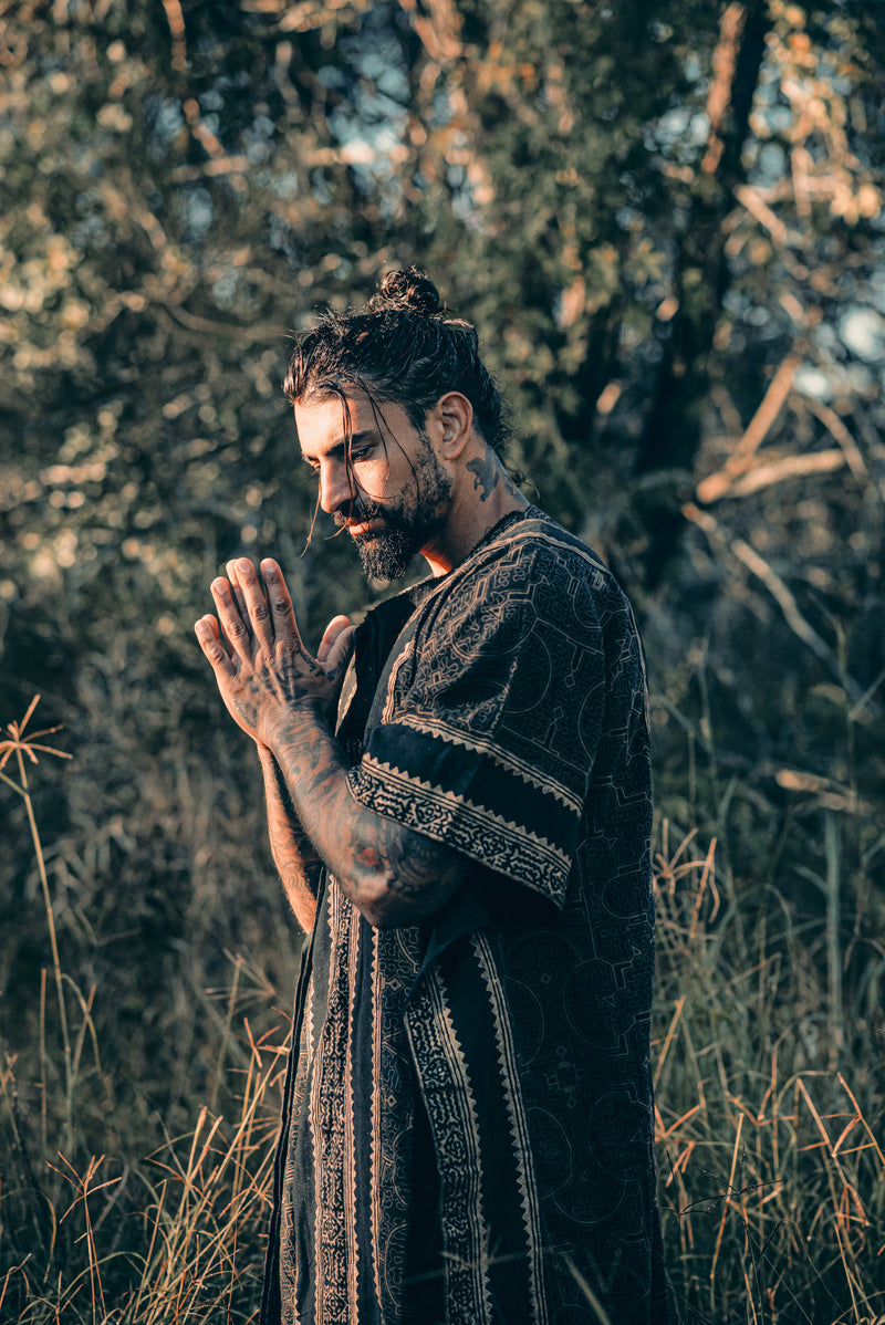 The flowing, comfortable design supports extended ceremonial sessions while the sacred patterns provide energetic protection and visual anchors for meditation. Natural cotton fibres breathe with your body, creating an optimal environment for introspective work.