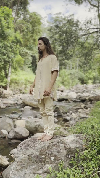 当社の IKRAN コットン シャツは、100% 天然の通気性のある柔らかいコットンでできています。自然に染められ、ストーンウォッシュされ、最大限の快適さとスタイルを実現するオープン V ネックのデザインで、部族のパターンで装飾されています。シャツの後ろは前よりも長く、丸みを帯びたフォルムで、スタイリッシュで快適にワードローブに加えることができます。