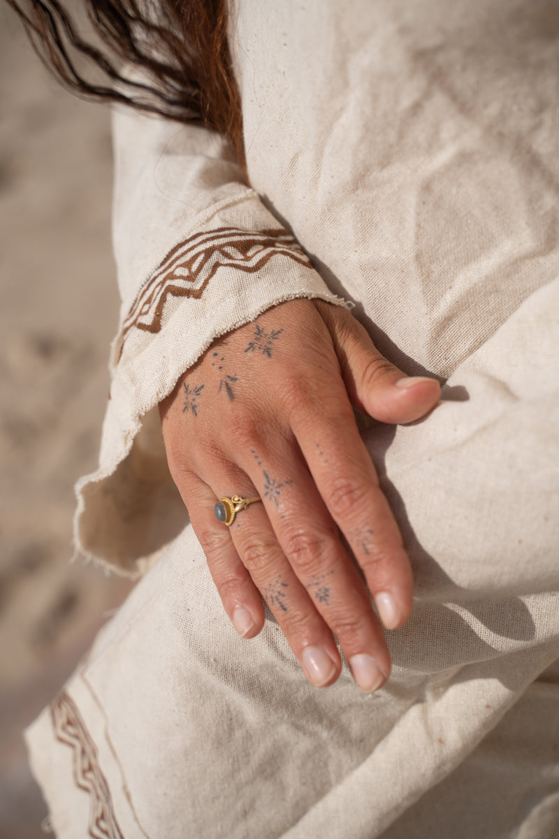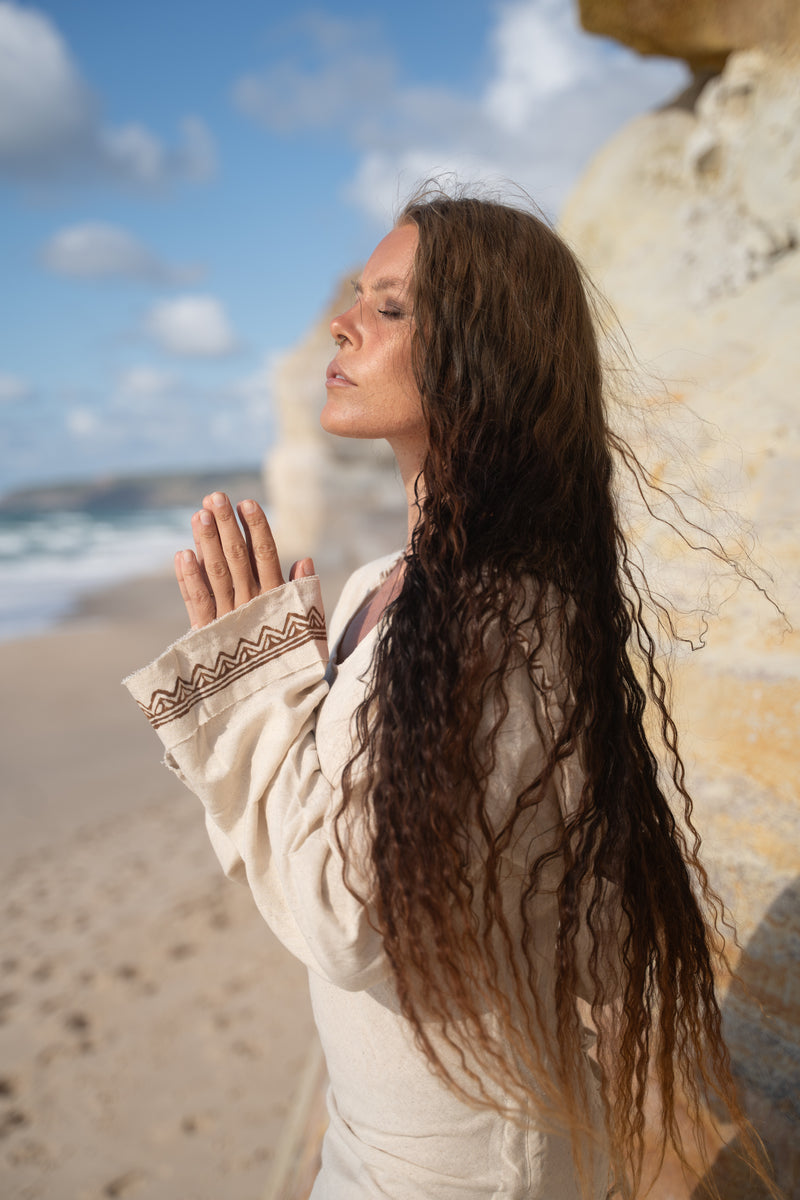 Our garments are handmade from natural fabrics, using sustainable and ethical practices.