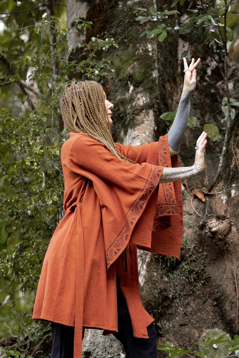 私たちの軽量な NAAMI 綿の着物は柔らかく通気性のある綿でできており、この着物は暖かい季節にぴったりです。手作りのブロック プリント パターンは、衣服に独特の職人技を加えています。