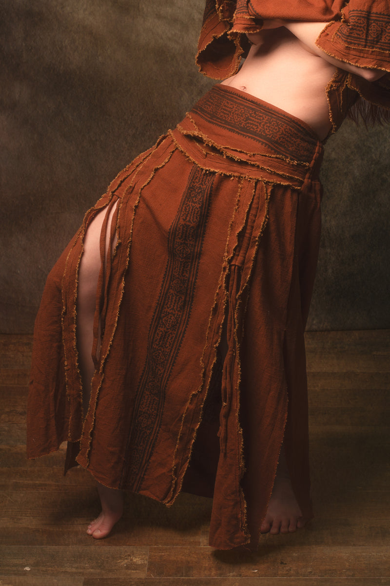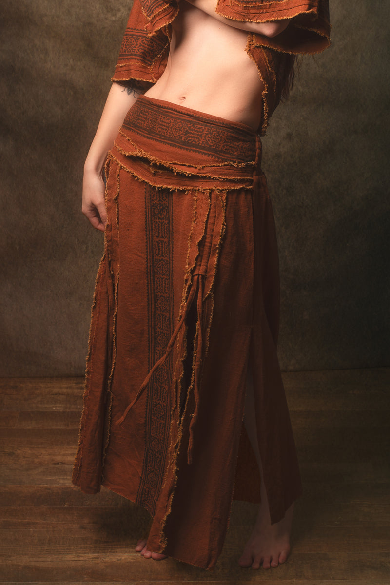 NARIAH Skirt Rust Handmade Cotton Block Printed Tribal Patterns Natural Dyed Fairy Gypsy Boho Festival Ceremony Ritual AJJAYA
