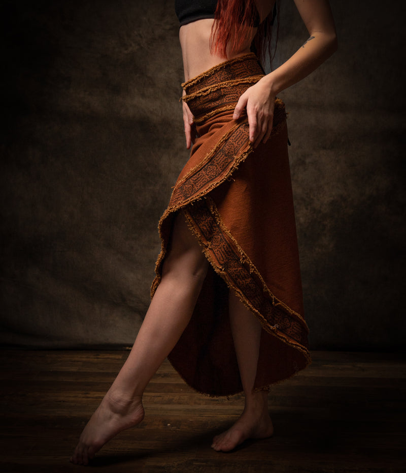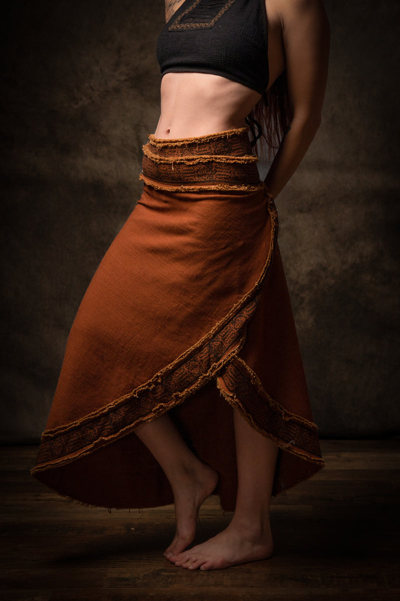 NYRA Wrap Skirt Rust Handmade Natural Cotton Block Printed Tribal Patterns Natural Dyed Fairy Gypsy Boho Festival Ceremony Ritual AJJAYA