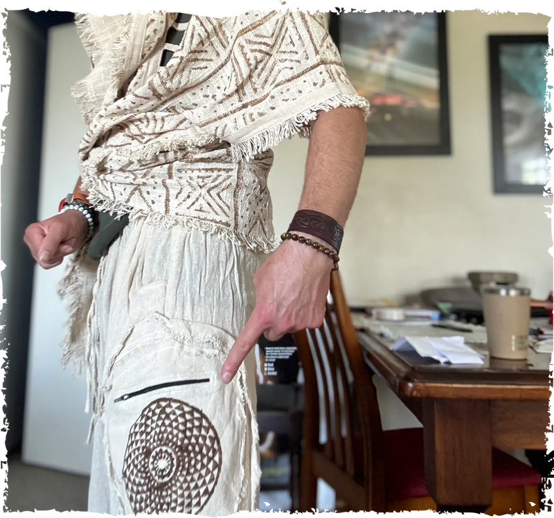 男式裤子米色阿富汗后宫吊裆,原始手工舒适瑜伽吉普赛波西米亚风阿里巴巴阿拉丁节果阿两个口袋 AJJAYA