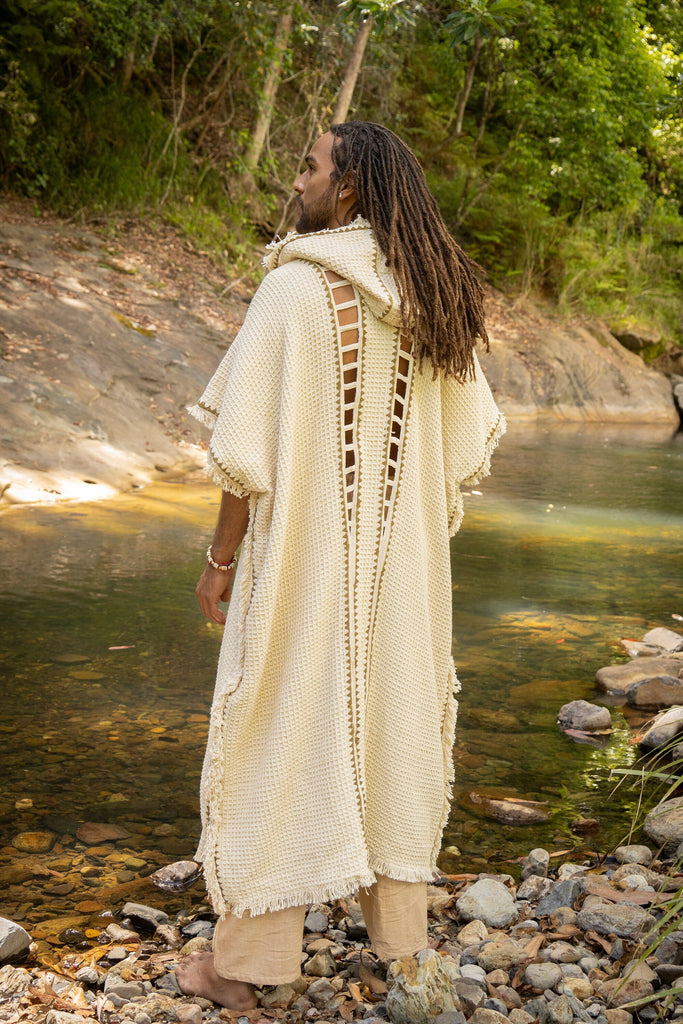 WIZARD 男式连帽和服背心象牙色米色部落仪式仪式吉普赛节日魔术仪式炼金术原始狂欢波西米亚土 AJJAYA