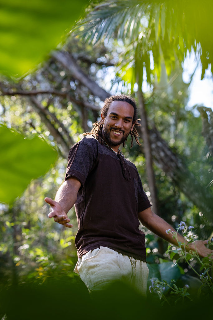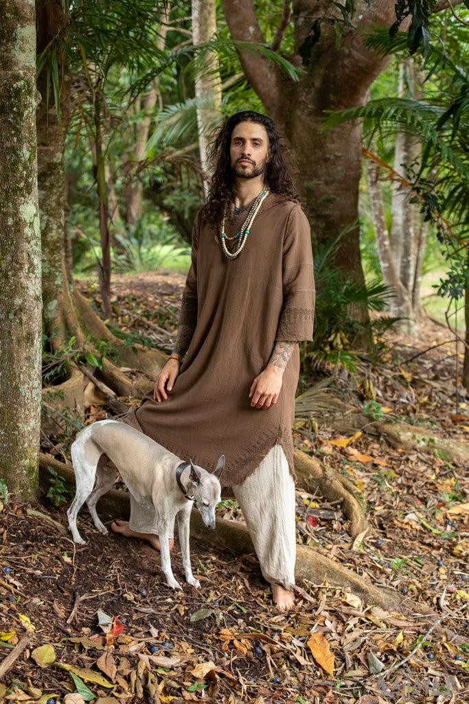 男式 WASKA 部落衬衫棕色神圣植物 Shipibo 萨满图案节日上衣萨满新吉普赛仪式仪式民族手工制作
