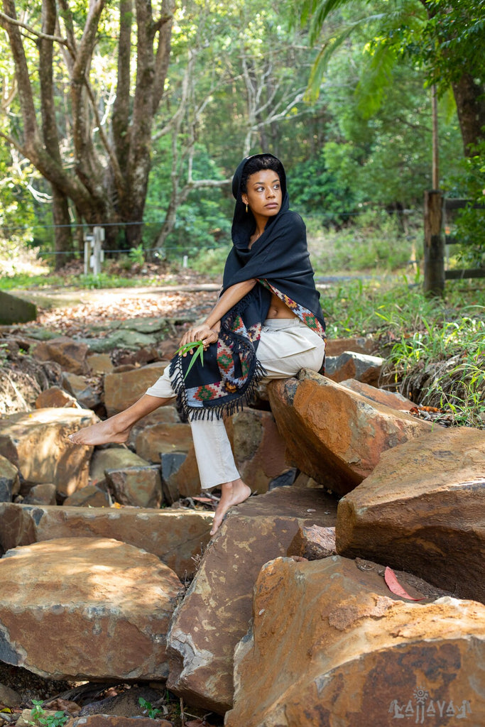 AYAWA 和服连帽黑色伊卡罗斗篷雨披长袍 Shipibo 神圣图案仪式仪式萨满部落披肩维京节日披肩 AJJAYA