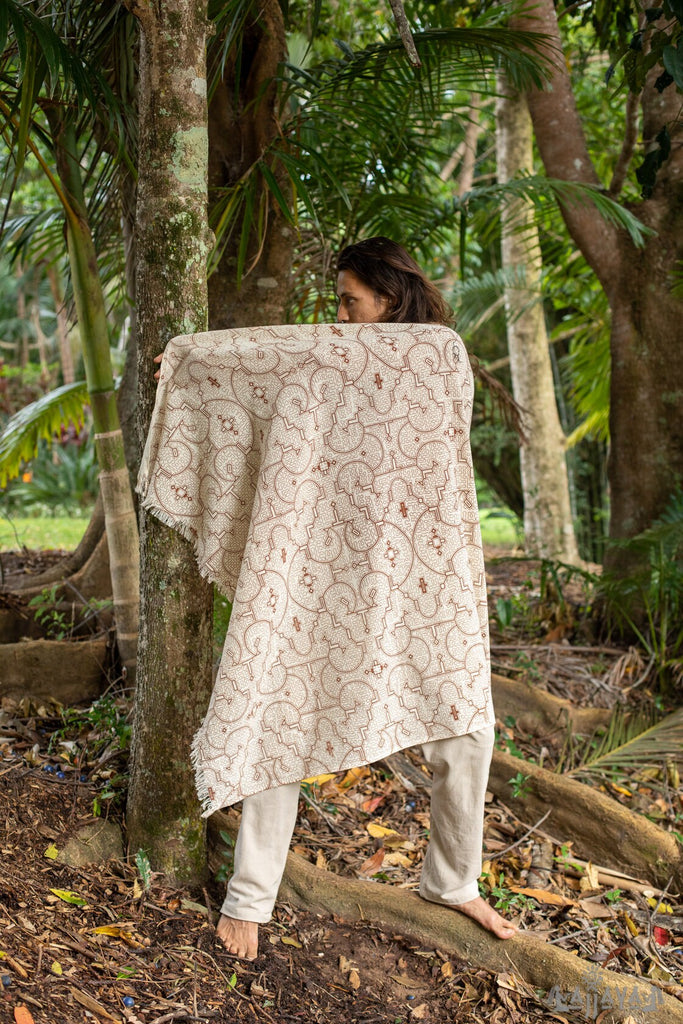 ANAGAMI 米色奶油色连帽和服斗篷斗篷长袍块印花天然染色仪式仪式萨满部落炼金术神圣披肩裹 AJJAYA