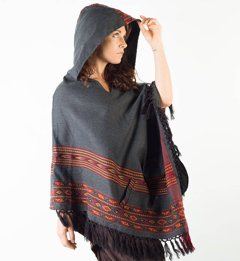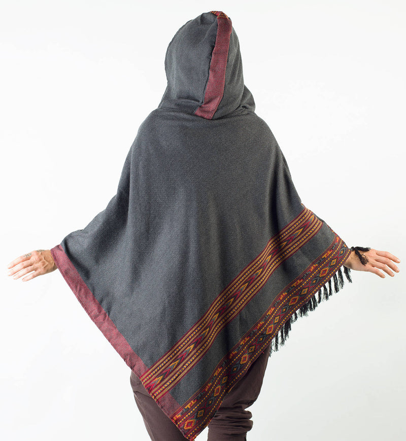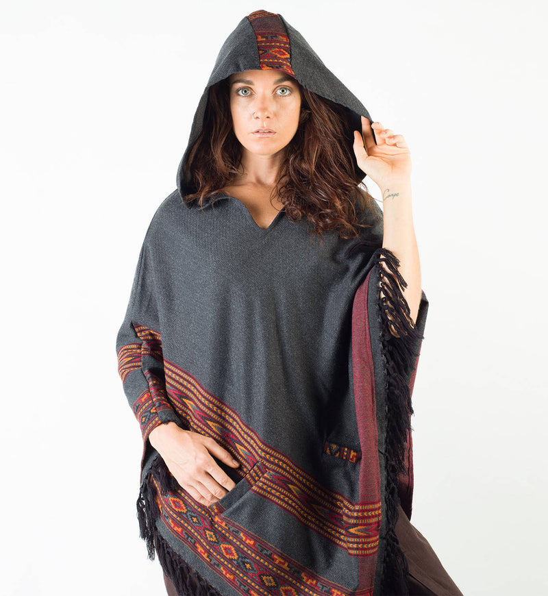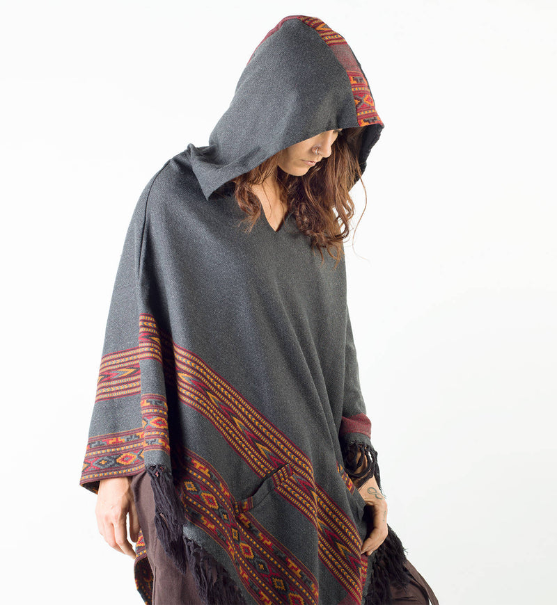 女式斗篷深灰色大罩牦牛羊毛部落刺绣波西米亚风图案吉普赛另类狂野节日狂欢墨西哥原始 AJJAYA